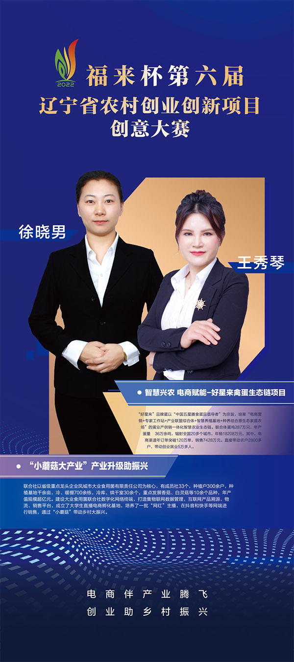 項目分為農(nóng)產(chǎn)品產(chǎn)銷和平臺服務(wù)兩大類,每類分別產(chǎn)生一等獎兩個。我市好星來農(nóng)業(yè)科技開發(fā)有限公司董事長王秀琴憑借“智慧興農(nóng) 電商賦能——好星來禽蛋生態(tài)鏈”項目獲得農(nóng)產(chǎn)品服務(wù)類一等獎,將與另外三個一等獎項目一同代表遼寧省參加全國農(nóng)村創(chuàng)業(yè)創(chuàng)新項目創(chuàng)意大賽。