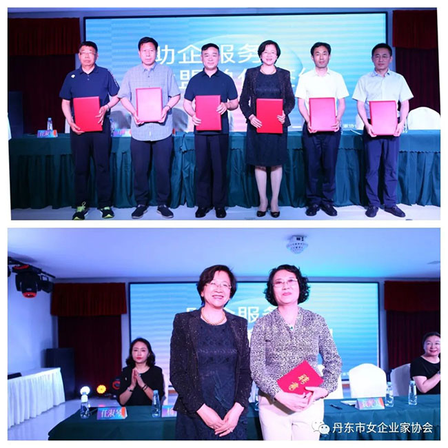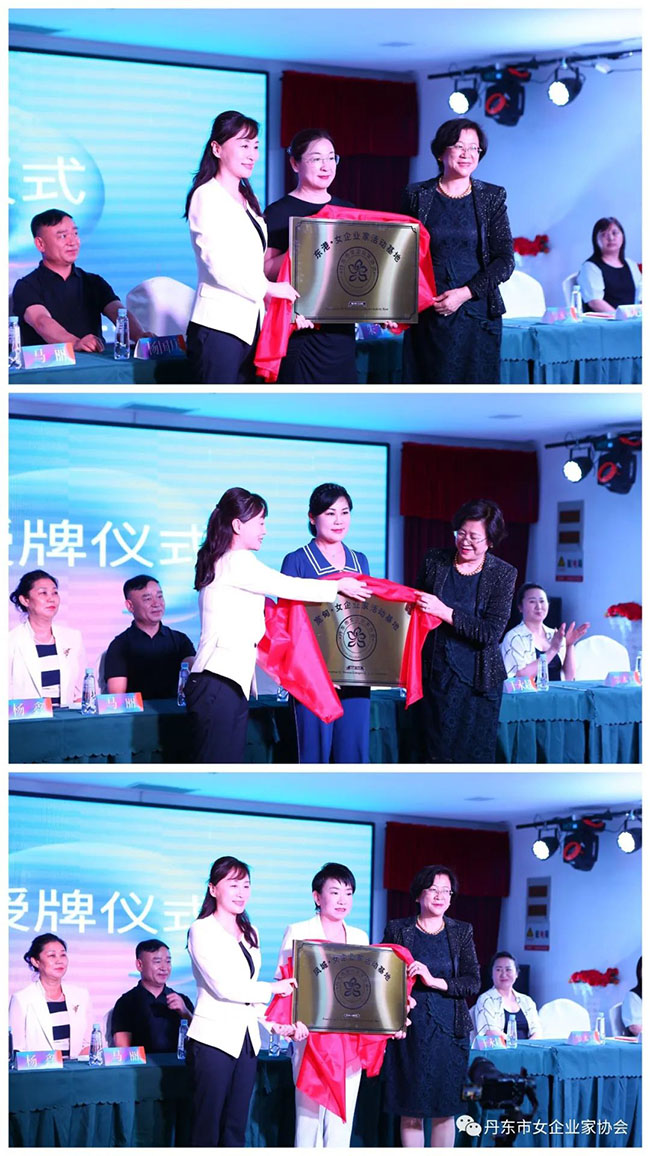 同時(shí),丹東市婦女聯(lián)合會副主席朱穎與丹東女企協(xié)會長袁光美向東港、鳳城、寬甸女企業(yè)家協(xié)會會員服務(wù)站授牌。